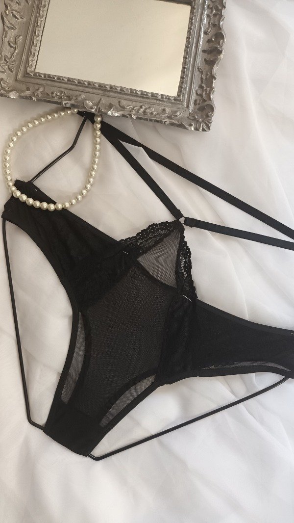 Detalle en el centro con puntilla de encaje que va hasta la cintura con elástico regulable.